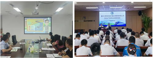 (一)开展安全教育培训活动。集团系统组织开展“安全生产大家谈”“班前会”“以案普法”等活动156场次,参与3502人次;组织观看“安全生产月”主题宣传片、《安全生产 责任在肩》《危险降临》警示教育片、“人人讲安全、个个会应急—畅通生命通道”宣传片等139场次;邀请重庆社安消防培训教官开展消防知识培训,组织职工学习《火场逃生必备常识》专题教育片,开展针对火灾、城市内涝自救互救技能培训;江跳线运营公司邀请安全专家以“安全生产标准化达标建设”为主题,开展全员安全教育培训活动。