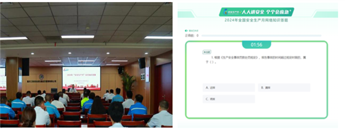 (二)举办安全知识竞赛。以“人人讲安全、个个会应急——畅通生命通道”为主题,组织开展安全知识竞赛活动,竞赛内容涵盖安全生产法律法规、安全操作规程、应急救援、事故案例分析等多个方面,充分考验了参赛员工的安全生产知识储备和应用能力。组织干部职工参加“安全生产月”网络知识答题活动,共计参与2211人次,进一步提高全体员工的安全意识和安全技能,营造“人人关心安全,人人重视安全”的良好氛围。