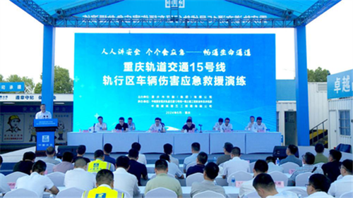 6月21日,集团在重庆轨道交通15号线一期土建09标两江大道铺轨基地举行2024年安全生产月应急救援演练。演练模拟了区间隧道内车辆碰撞与平板车脱轨的突发情况,并伴随火势蔓延,导致一人受伤、一人被困的紧急场景。轨行区管理单位立即启动应急预案,第一时间向上级报告事故情况,同时指导现场施工人员有序疏散,并采取措施成功拦截后续车辆,有效遏制了事态的进一步恶化。通过此次实战化演练,应急救援队伍的能力得到了显著增强,应急处置水平得到了进一步巩固和提升。